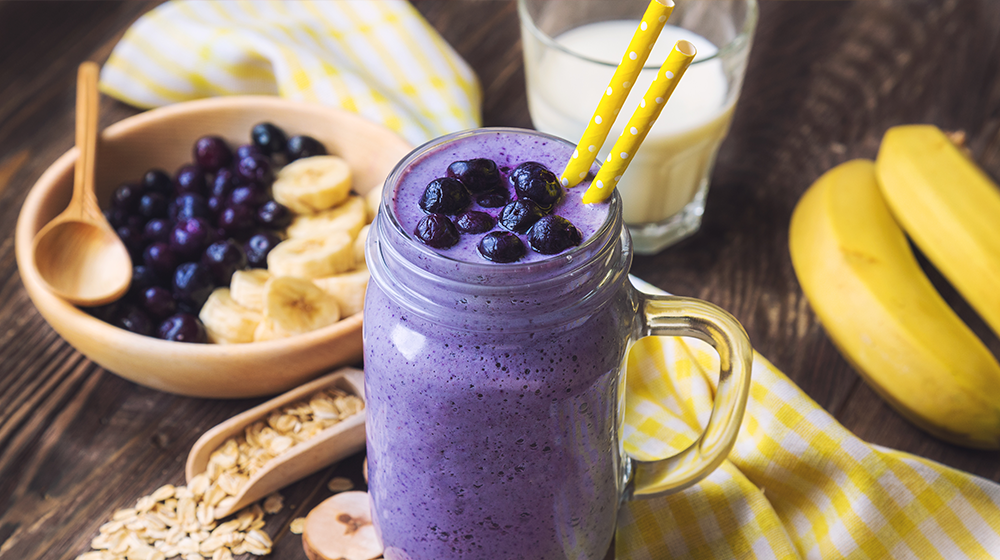 바나나, 블루베리, 요거트를 모두 믹서에서 갈아주기만 하면 끝!